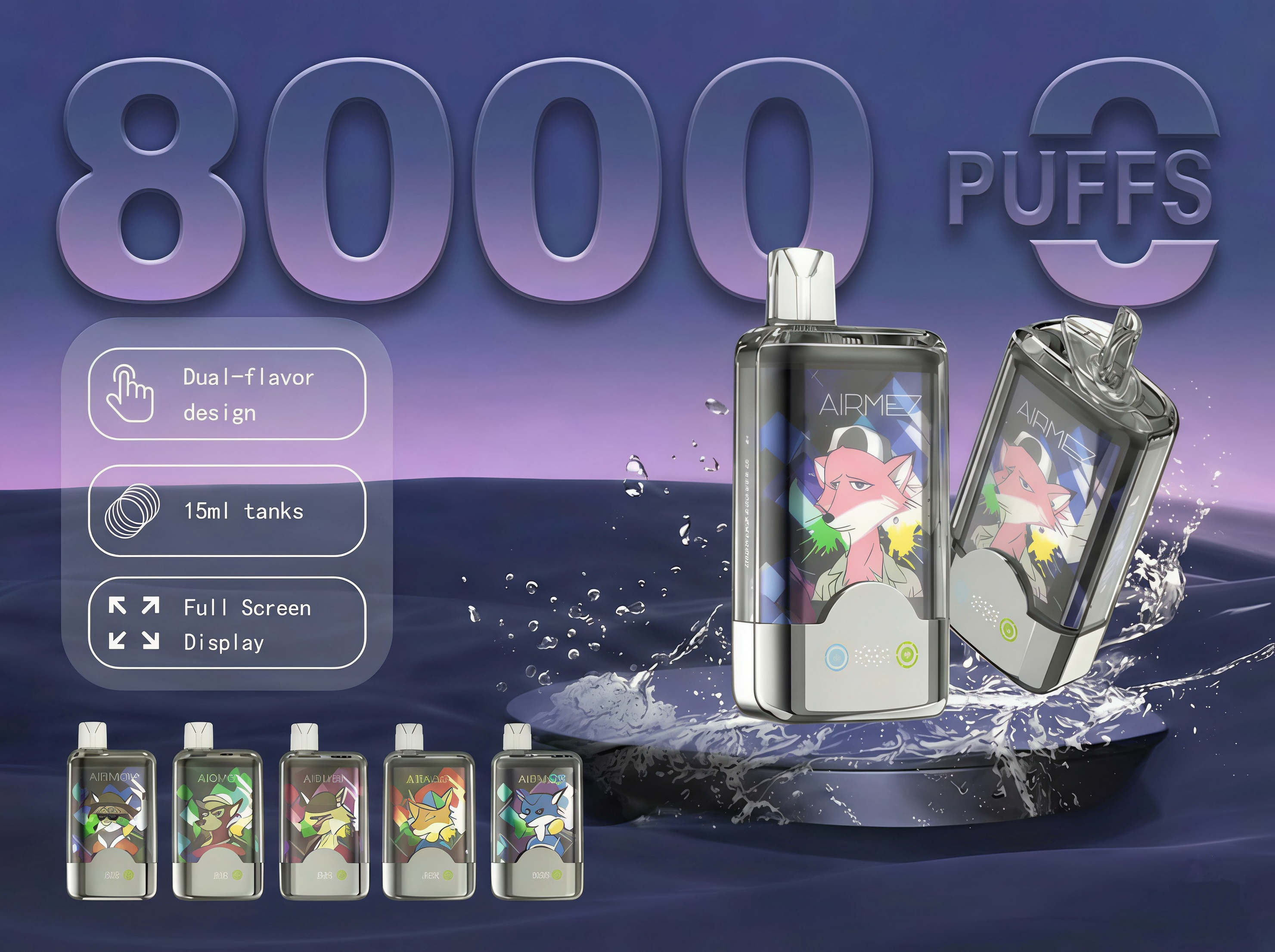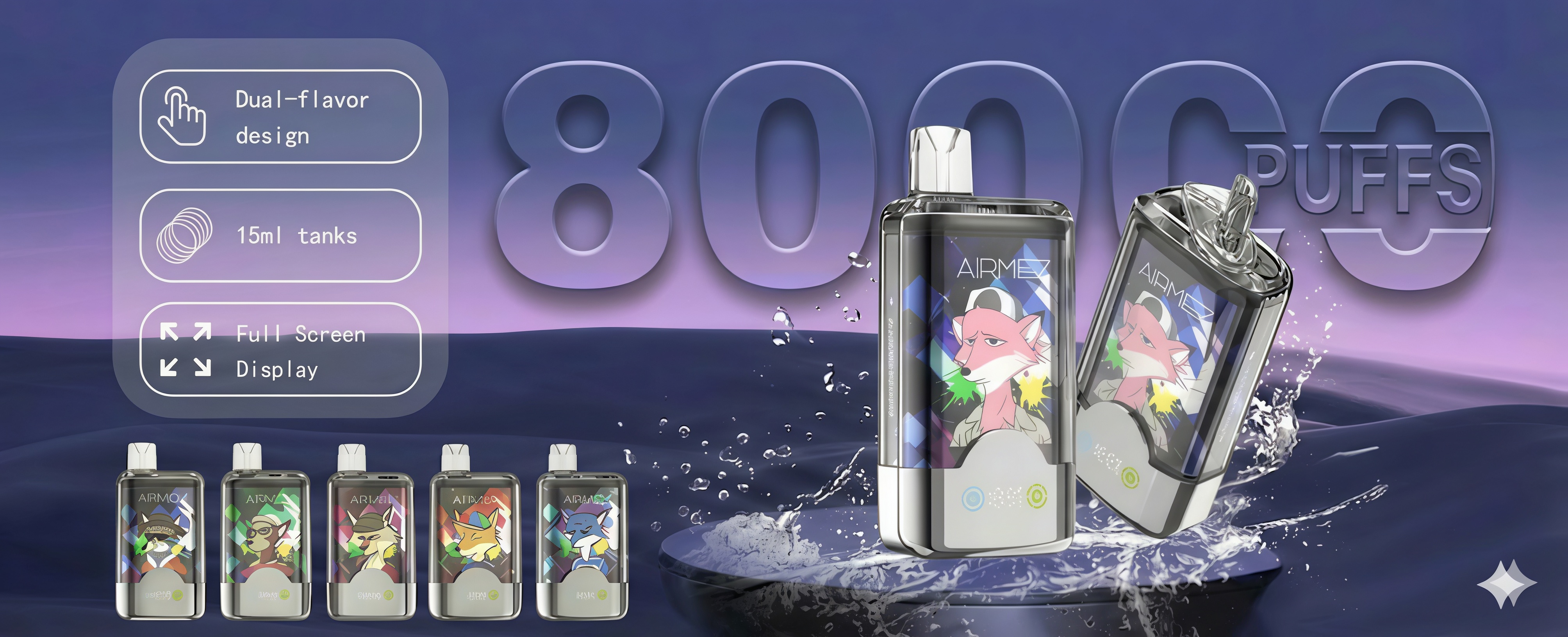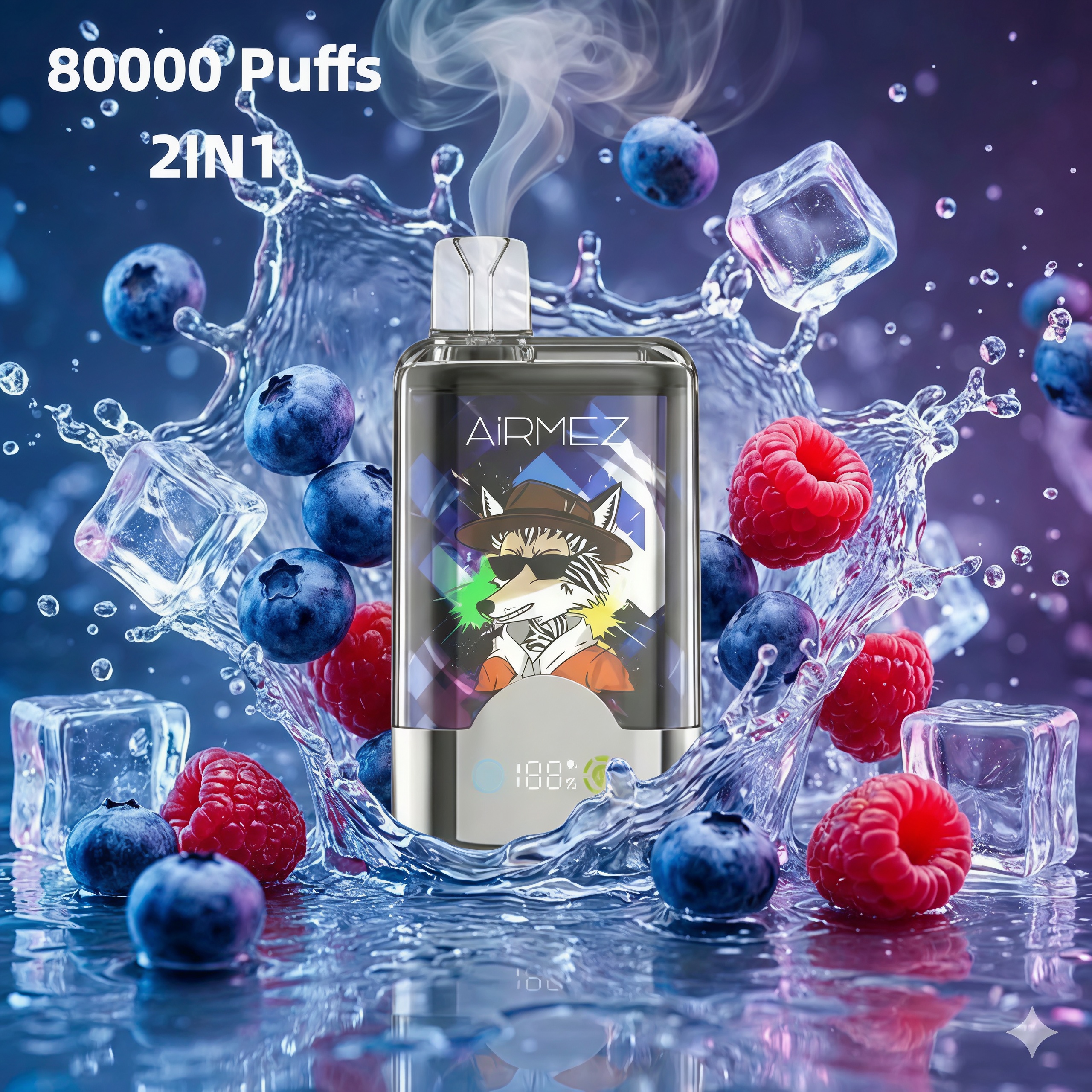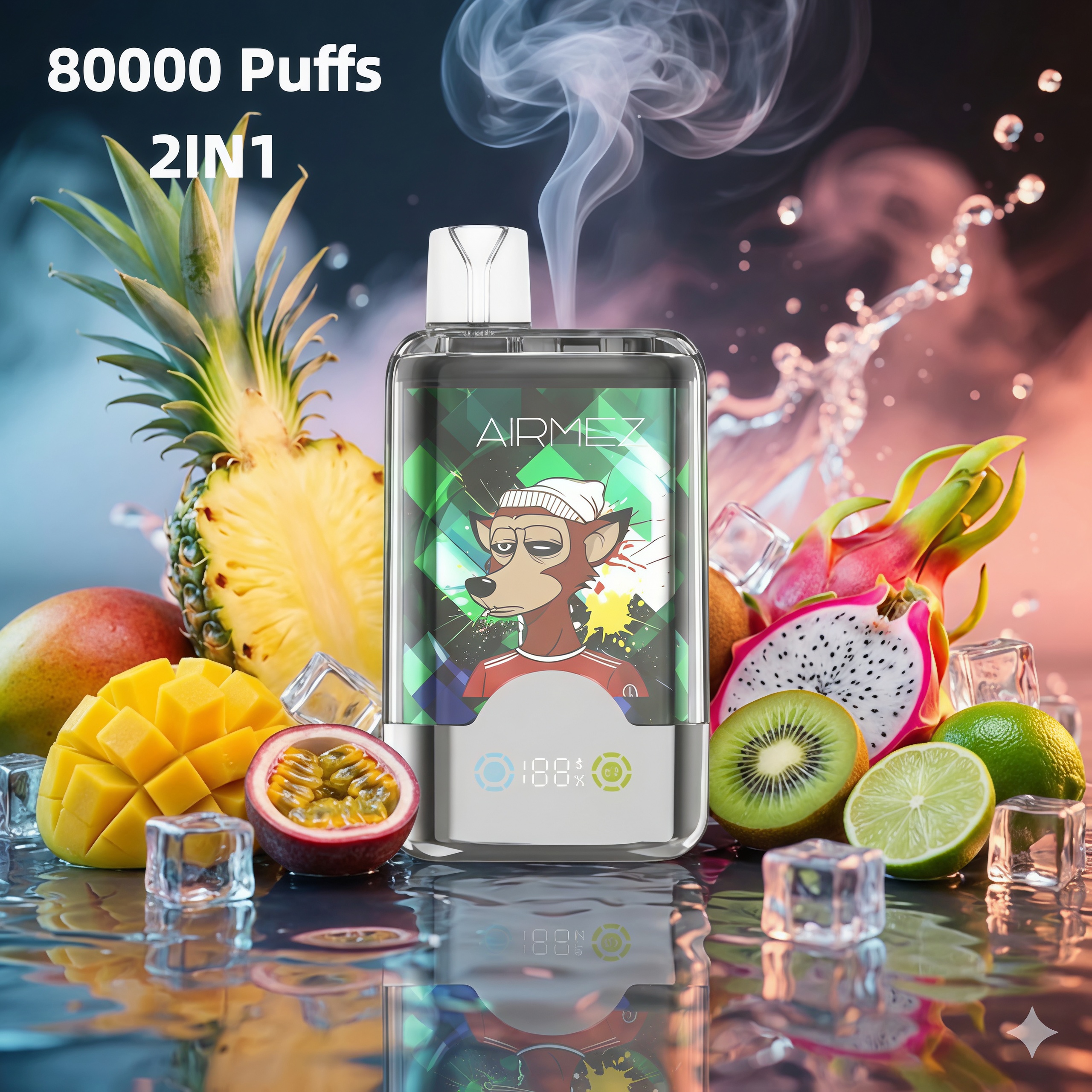 Airmez FOX 2 IN 1 Double Flavors 80000 Puffs Disposable Vape (LED Display) (Nic 2%)